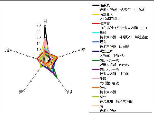 酒の中島屋、サケハウス | 薄い黄金色の酒色。香りは低い。先ず辛味が感じられ、次に淡い甘味を感じる。酸味は低調、旨味も少なく少し淋しい。最後は苦味でばっさり。 | 3 |