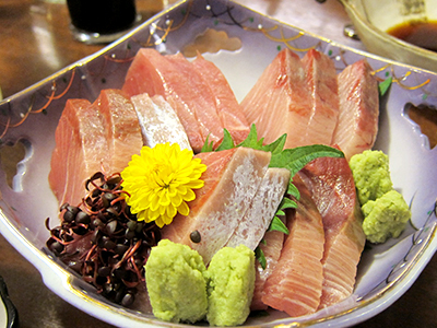 今月のテーマは「大吟醸クラスのお酒」。肴は舞鶴の天然ブリの刺身から。