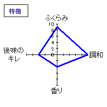 | 参加者のコメント | ごく薄い黄金色の酒色。木のような香りや優しい梨のような香りがある。綿菓子を思わせる強い甘味と辛味が感じられる。アルコール感が強くキレもあるが、やや地味な印象。 | |