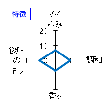 | 参加者のコメント | 香りは低い。甘味はそこそこあるが酸味は少な目でシンプルな印象。柔らかく滑らかでまとまりはよいが、終盤ははっきりと渋味を感じさせ、辛く切れていく。食中酒向き。 | |