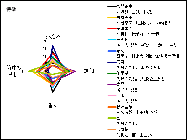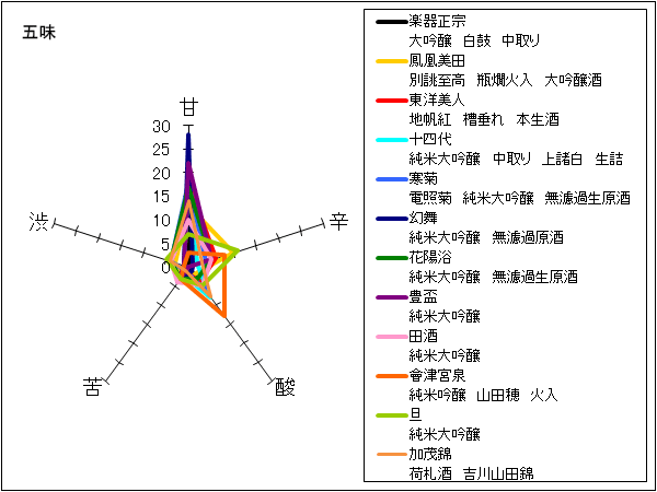 オオタケ、吉田屋 | 透明の酒色。白ブドウやメロンの甘い香りがある。優しい甘味と鋭い辛味、強いアルコール感があり、やや濃厚ながらバランスよくさっぱり、すっきりした印象。後半は甘味を残しながらキリッと収まる。 | 2 |