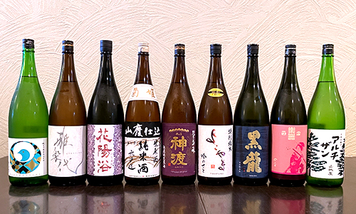防長鶴、雅楽代、花陽浴、菊姫、神渡、よこやま、黒龍、楽器正宗、山城屋